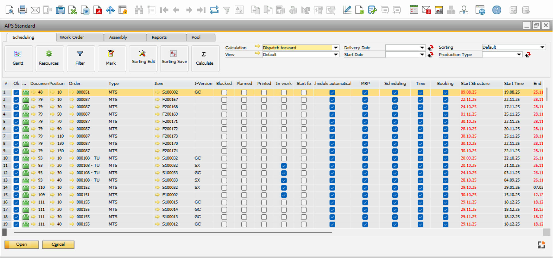 Beas APS Gantt Chart